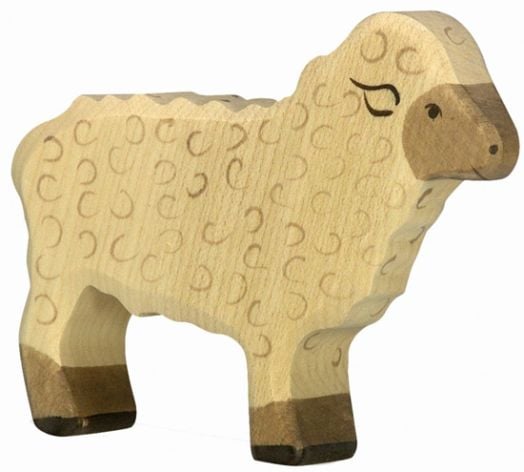 Дървена фигурка на овца, с която децата ще се забавляват и развият своето въображение.