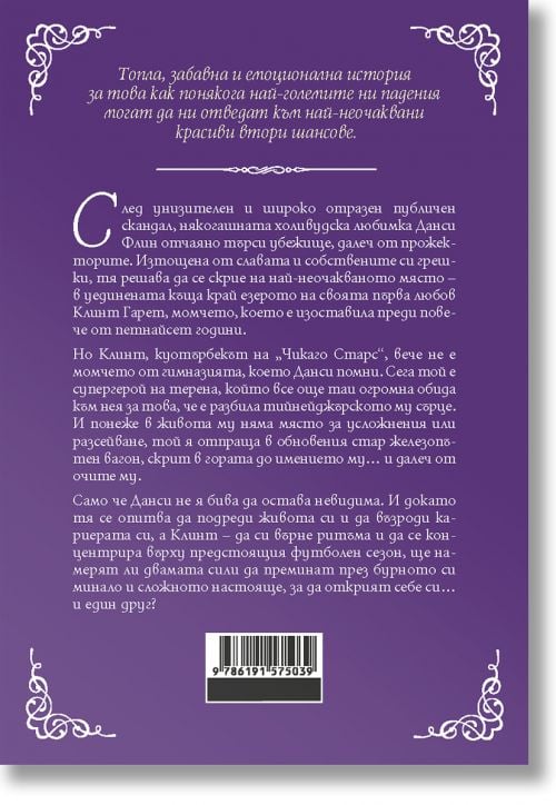 След унизителен и широко отразен публичен скандал, някогашната холивудска любимка Данси Флин отчаяно търси убежище, далеч от прожекторите. Изтощена от славата и собствените си грешки, тя решава да се скрие на най-неочакваното място – в уединената къща край езерото на своята първа любов Клинт Гарет, момчето, което е изоставила преди повече от петнайсет години. Но Клинт, куотърбекът на „Чикаго Старс“, вече не е момчето от гимназията, което Данси помни. Сега