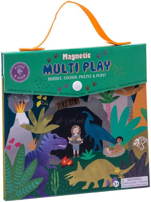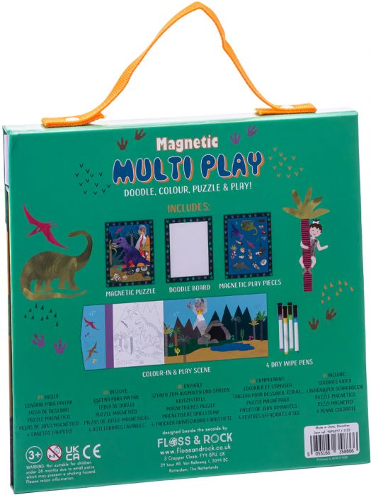 Магнитна мулти игра 4 в 1 от Floss & Rock с магнити и оцветяване "Динозаври" предлага за малчуганите различни игри и творчески забавления с Magnetic Multi Play.