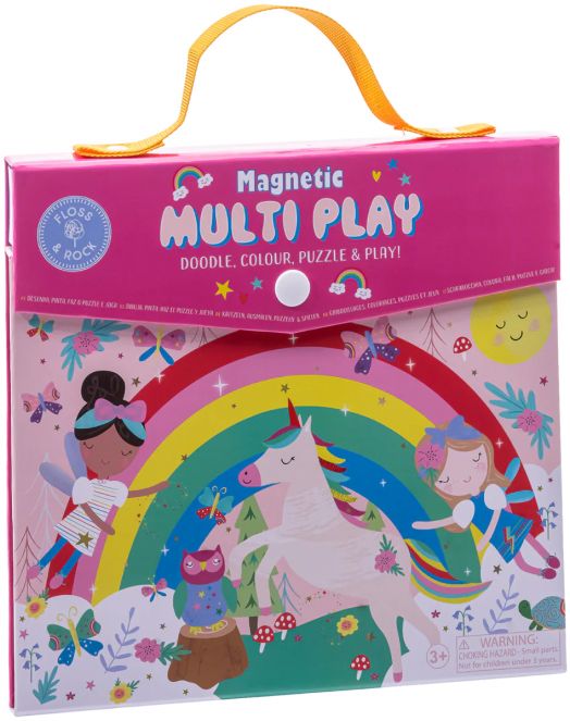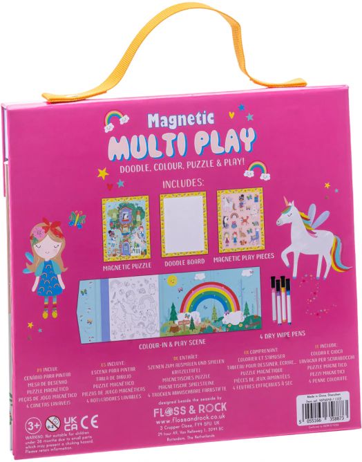 Магнитна мулти игра 4 в 1 от Floss & Rock с магнити и оцветяване "Rainbow Fairy" предлага за малчуганите различни игри и творчески забавления с Magnetic Multi Play.