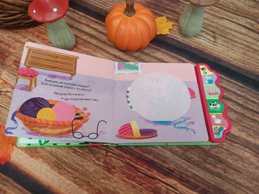 Със своите 6 реалистични звука, музикален модул с бутон за изключване и текстилни капачета на всяка страница, тя превръща четенето в забавно и образователно преживяване.