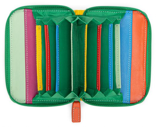 Този калъф в стил „акордеон“, позволява да разглеждате картите си бързо и лесно. Затваря се изцяло с цип, за да защитите съдържанието му. Има заден джоб, идеален за скриване на спешни пари. Комбинацията от функционалност и изчистен дизайн го прави подходящ за ежедневна употреба, като същевременно внася щрих на свежест и цвят.