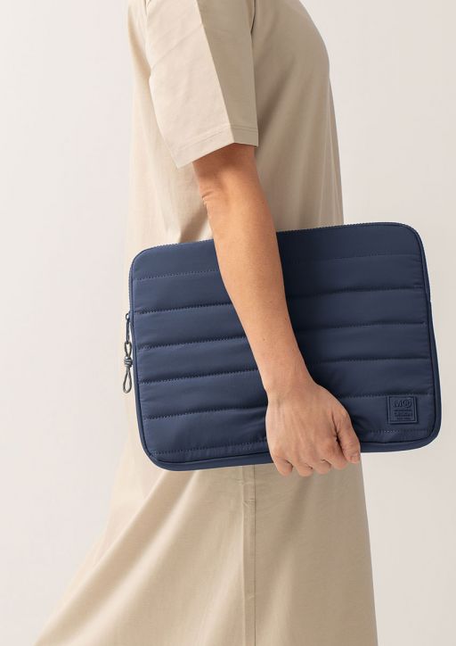 Мек тъмносин текстилен калъф Miquelrius Urban Soft Navy, подходящ за лаптоп или друг вид мобилни устройства с размери до 13” / 14”.