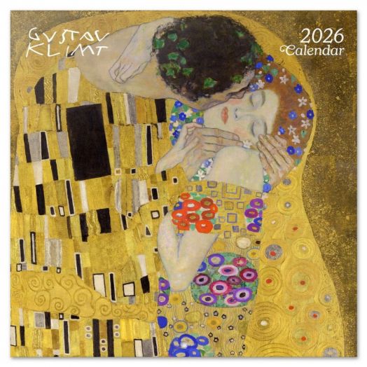 Вертикален стенен календар за 2026 година с някои от най-известните творби на Густав Климт.