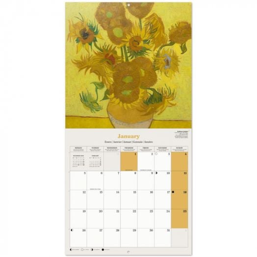 Вертикален стенен календар за 2026 година с картини от прочутия нидерландски художник Винсент ван Гог.
