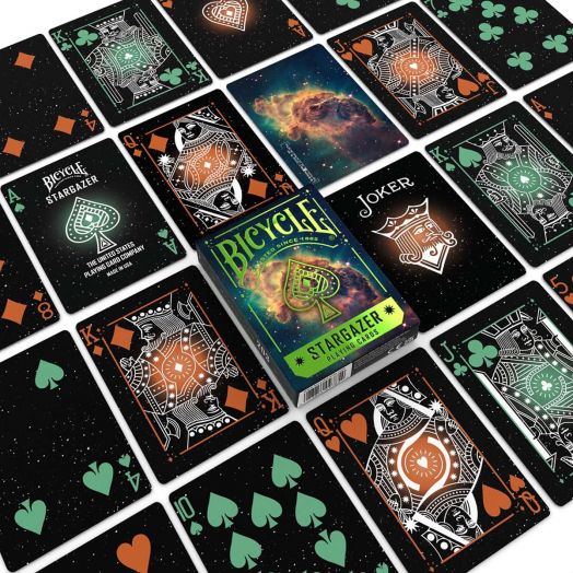 С дизайн на картите с фигури, вдъхновен от съзвездия, и кутия с фолио в зелено, това тесте ще ви донесе цяла вселена от забавление.
