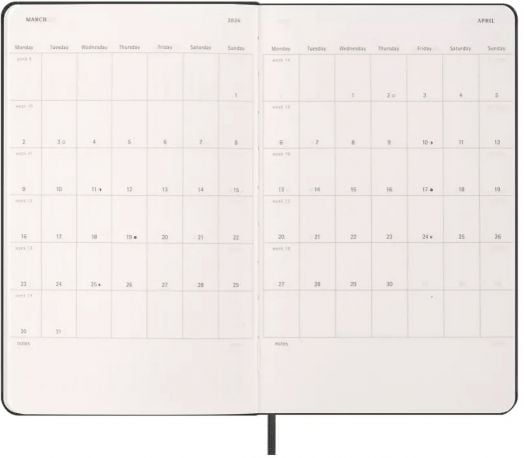 Всеки ден от седмицата е на отделна страница, а събота и неделя - на една страница.