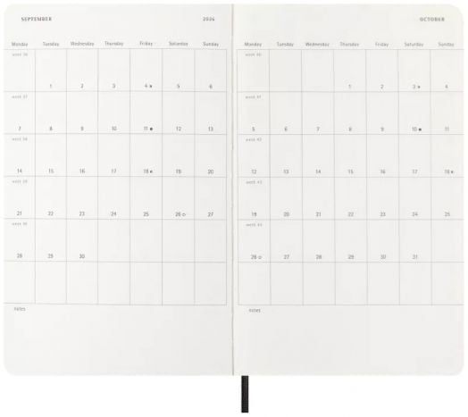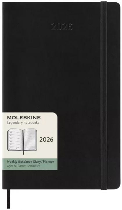 Класически черен седмичен тефтер - органайзер Moleskine Black за 2026 година с меки корици.
