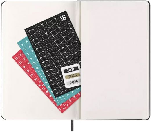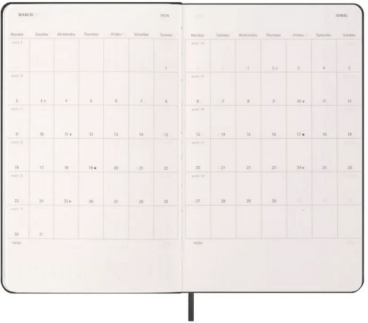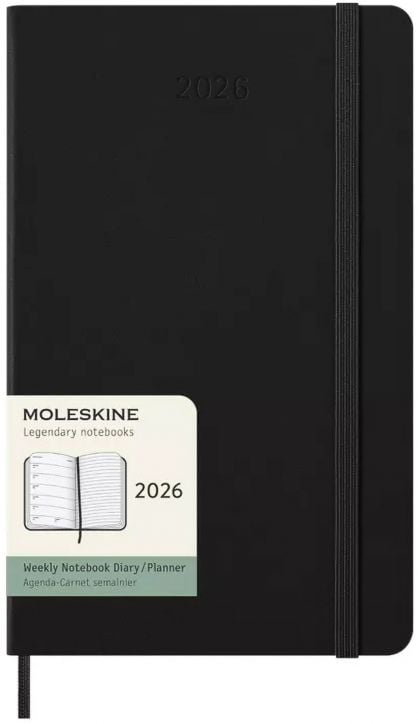 Класически черен седмичен тефтер - органайзер Moleskine Black за 2026 година с твърди корици.