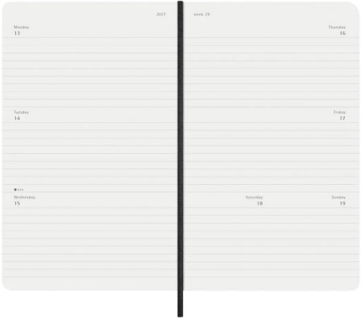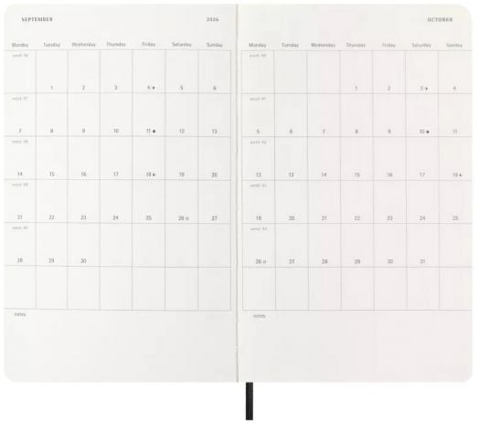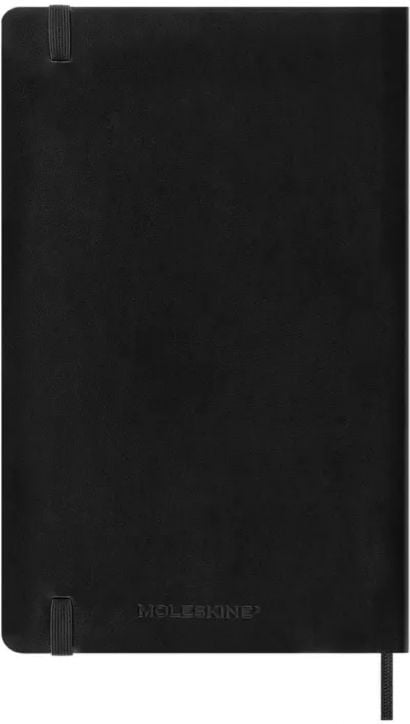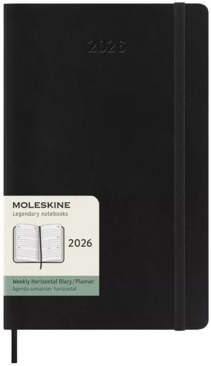 Класически черен седмичен тефтер - органайзер Moleskine Black за 2026 година с меки корици и удобна и еластична лента, която да защитава бележките ви.