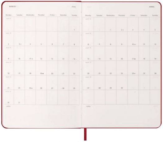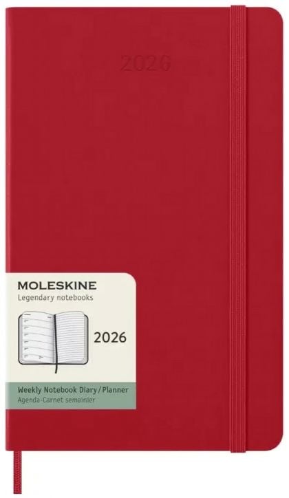Класически червен седмичен тефтер - органайзер Moleskine Scarlet Red за 2026 година с твърди корици.