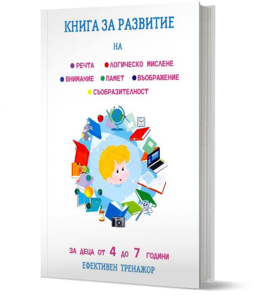 Пред вас е едно практично пособие, което помага, с подбраните задачи интересно и увлекателно, да помогнете на детето си да развие своят интелект. Това е възрастта, когато е необходимо да се проконтролира развитието на психичните му процеси като памет, внимание, мислене, въображение, да се проверят потенциалните възможности в различни области на знанието (развитие на речта, запознаване с външния свят и други).