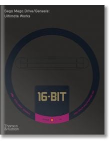 Минималистична корица на книгата "Sega Mega Drive/Genesis: В центъра е изобразена конзола с надпис "16-BIT", отгоре е заглавието, подчертани са интервюта за разработката на игри, а в долния ляв ъгъл е логото на Thames & Hudson.