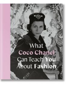 Корицата на "На какво може да ви научи Коко Шанел за модата" е със стилна черно-бяла снимка на жена в елегантно облекло и с шапка, а думите "Коко Шанел" и "Мода" са подчертани в розово за творческо вдъхновение.
