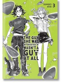 Две илюстрирани млади жени стоят на зелен фон с плаващи китари и кибритени клечки, показвайки любовта си към музиката. Корицата е със заглавие "The Guy She Was Interested In Wasn't Guy at All, Vol. 3.