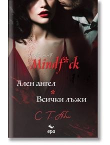 На корицата на книгата е изобразена жена в червена рокля и мъж, който се навежда близо до нея. Заглавието "Ален ангел. Всички лъжи" се откроява, като под него има български текст, създаващ мрачна, мистериозна и съблазнителна атмосфера.
