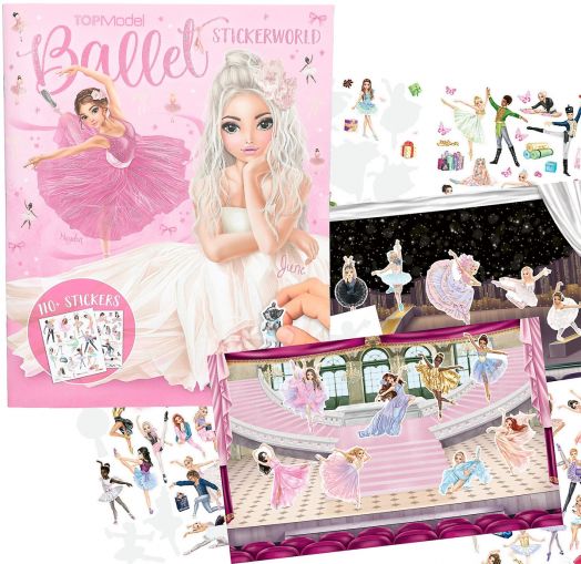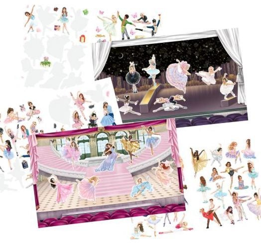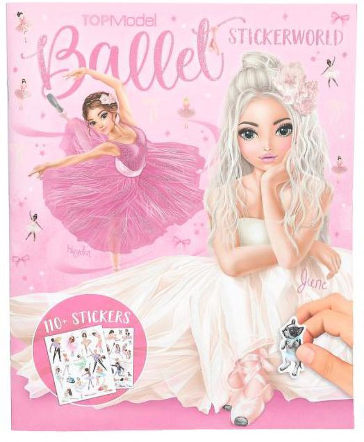 Светът на балетните стикери от TOPModel е посветен на танците: 20 красиво илюстрирани страници с фон и 3 двойни страници, пълни със стикери за рокли и аксесоари