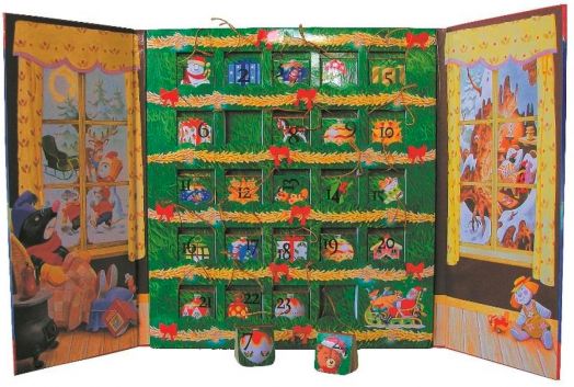 Съдържа 24 великолепно илюстрирани малки книжки с приказчици. Във всеки от предпразничните дни децата могат да слушат по една от интересните истории или сами да я четат. След като се насладят на приказките, децата могат да превърнат книжките в пъстра и весела украса на коледната елха. Затова картонените книжки са снабдени със златни лентички.