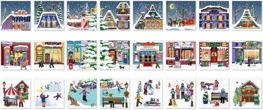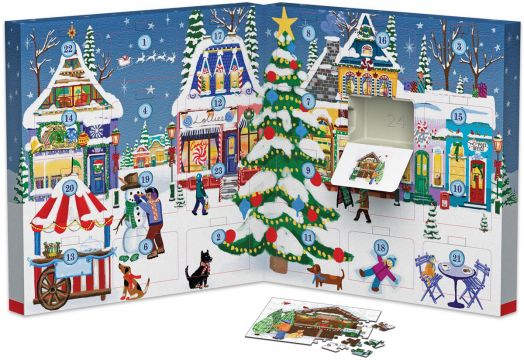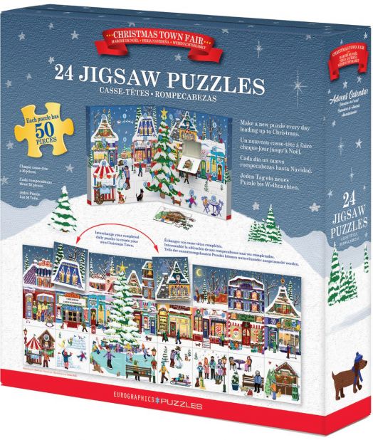 Отпразнувайте радостта от сезона с този очарователен адвент календар, включващ 24 пъзела. Всеки ден разкрива нов, красиво илюстриран пъзел от 50 части, който оживява магията на коледния градски базар. От заснежени дървета и оживени пазари до уютни къщички и весели герои – всеки пъзел улавя топлината и вълшебството на празниците.