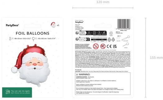 Фолиев балон във формата на лицето на Дядо Коледа / Santa Claus.