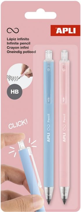 Автоматичен молив APLI Infinity HB – с безкраен графит (комплект 2 бр. - светлосин и бледорозов)