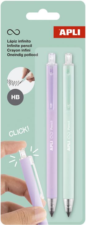 Автоматичен молив APLI Infinity HB – с безкраен графит (комплект 2 бр. - светлозелен и светлолилав)