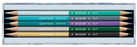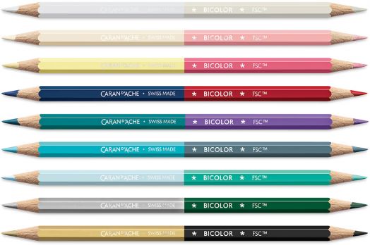 - Ексклузивен сребърен печат върху моливите: Caran d’Ache + Swiss Made + Bicolor + FSC™.
