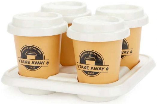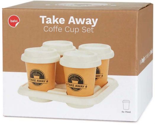 Елегантен комплект от четири чаши за кафе, в който стилът и функционалността се срещат по най-фин начин. Чашите са създадени в дизайн на модерни „to-go“ чаши, допълнени с декоративни капаци и поднесени върху изискана подложка – перфектната комбинация за стилно кафе изживяване у дома.
