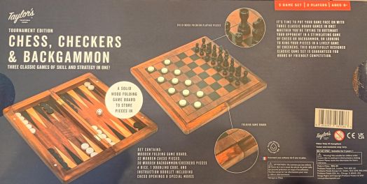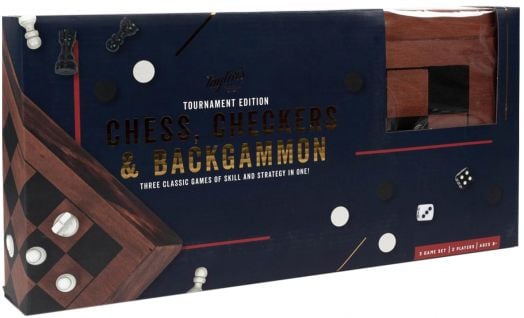Време е да влезете в играта с този стилен комплект от три класически настолни игри! Независимо дали ще надхитрите опонента си в стратегическа партия шах или табла, или ще се забавлявате с динамична игра на дама, този елегантно изработен комплект гарантира часове приятелско съревнование.