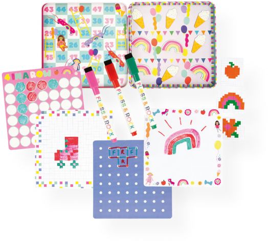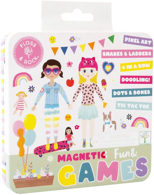Магнитен комплект за забавления Floss & Rock от серията „Fun & Games Tin“ – Dolls в тематична метална кутийка, а очарователният дизайн Dolls отвежда децата в свят на забавление и приятелство!