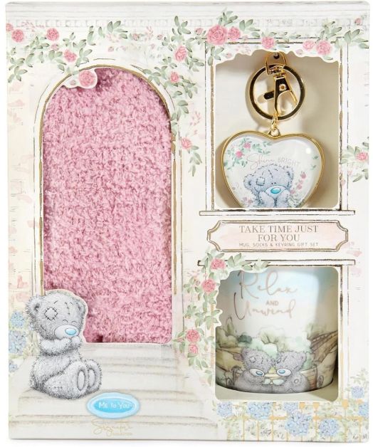 Включени са чорапи, чаша и ключодържател - всичко за приятно и стилно ежедневие.