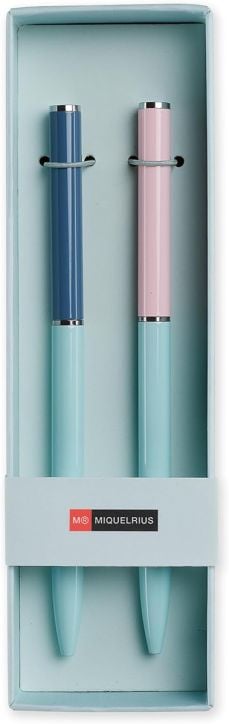 Комплект от две автоматични метални химикалки Miquelrius Thin Metallic Blue.