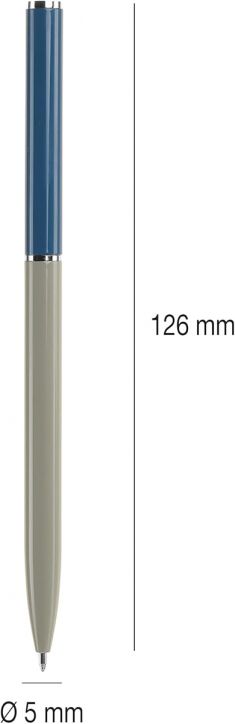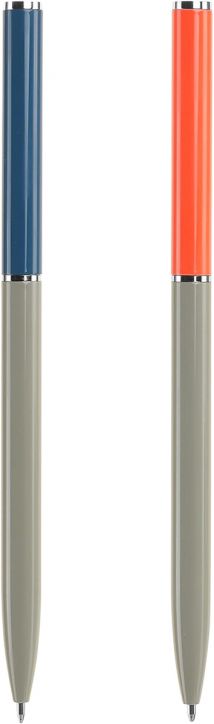 Корпусът на химикалката е метален, но леко едновременно елегантен, лек и тънък в два цвята: долната част/половина и на двете е в сив цвят, а в горната - на едната е в пастелно петроленосиньо, а на другата - в оранжев цвят.