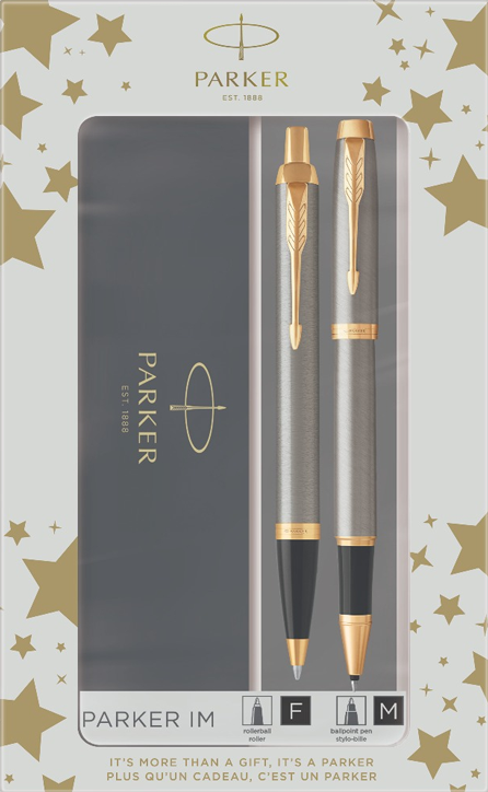Подаръчен комплект Parker - химикалка и ролер Royal IM Brushed Metal GT.