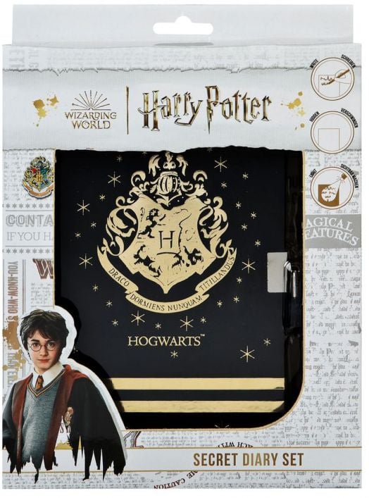 Стилен дневник с катинар Harry Potter, създаден за всички фенове на магическия свят на Хогуортс. Тефтерът е с твърди корици и специален холограмен ефект, а към него е включен UV маркер, с който можеш да записваш тайни послания, видими само под UV светлина.