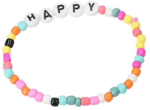 Предлага се в комплект с гривна от разноцветни мъниста с надпис HAPPY и декорирана с две ключета във формата на сърце.