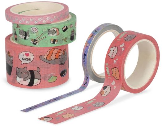 Комплект от 5 вида цветно тиксо – всички от тях, вдъхновени от едно очарователно коте.