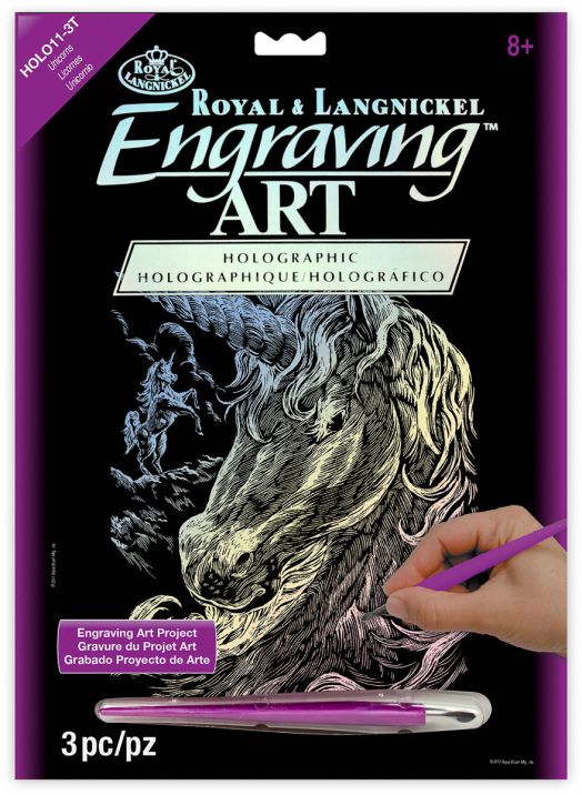 Сътворете картина с красив еднорог, благодарение на комплект за гравиране Royal - Холограмна основа - Еднорог, 20 х 25 см.
