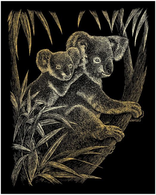 Сътворете картина с коали, благодарение на комплект за гравиране Royal - Златна основа - Коали, 20 х 25 см.