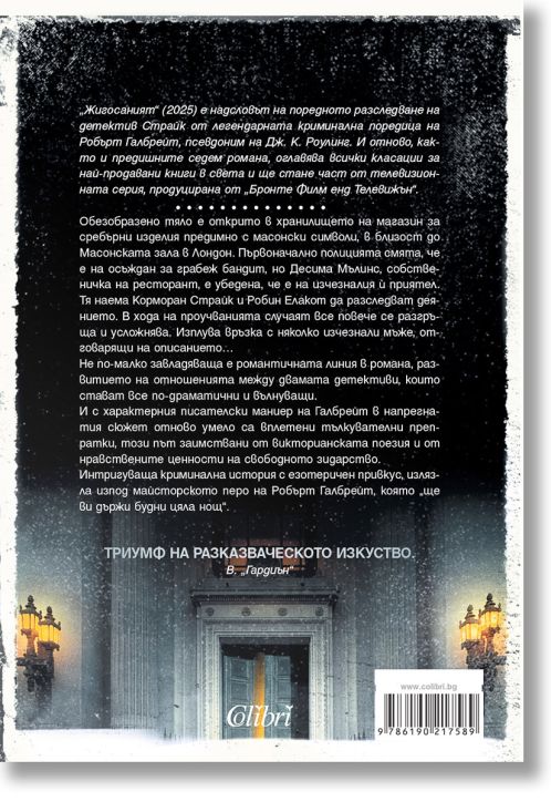 Интригуваща криминална история с езотеричен привкус, излязла изпод майсторското перо на Робърт Галбрейт, която „ще ви държи будни цяла нощ“.