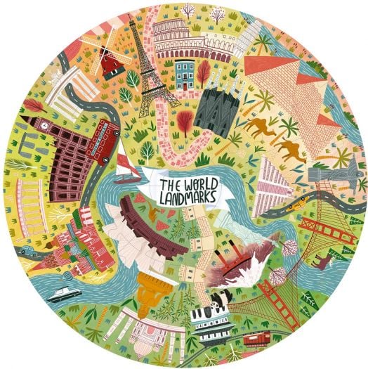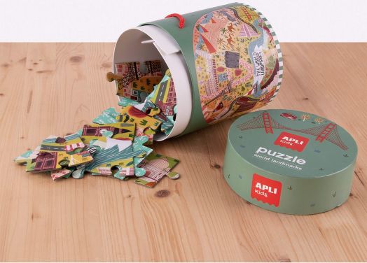 Кръгъл пъзел, с който любознателните малчуганите ще могат да научат различни архитектурни забележителности - Саграда Фамилия, Айфеловата кула, Тадж Махал, Биг Бен, Египетските пирамиди, Операта в Сидни и много други .