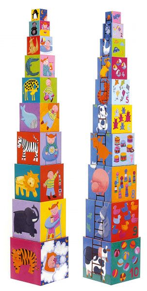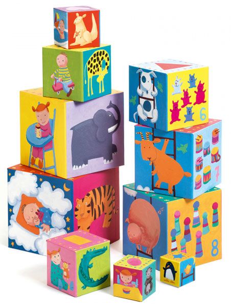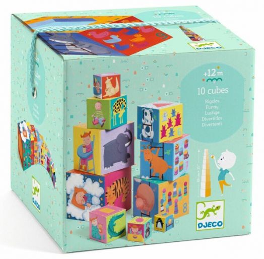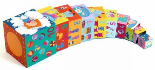 Забавлявай се и учи с веселите кубчета на „Djeco”. Те са предназначени за всички дечица над 1 годинка и изработката им е напълно съобразена с тази възраст. Направени са изцяло от безвредни материали и са в достатъчно голям и удобен за детска ръчичка размер. Kубчетата се прибират удобно едно в друго и заемат размер 15 x 15 x 15 см.