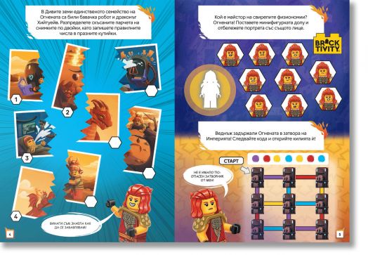 Проследете съперничеството между Огнената и повелителя на огъня Кай, разрешете вълнуващи загадки, прочетете забавни комикси и истории… и открийте откъде произлиза мощното ръмжене на Огнената! С нея никога няма да ви е скучно!