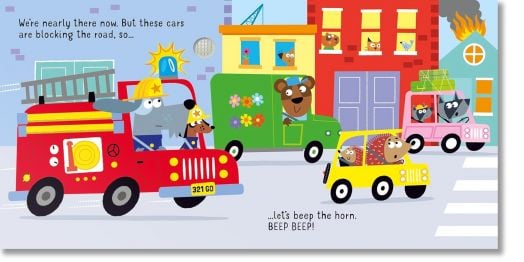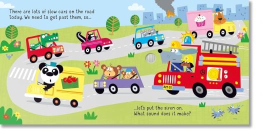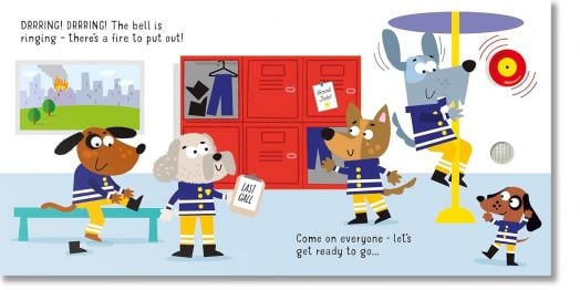 From the alarm ringing at the fire station to the fire engine revving and the siren blaring, there are five exciting sounds for children to hear in this delightfully illustrated book. Join a team of canine fire fighters as they get ready to save the day, and find out about fire engines and what they do.