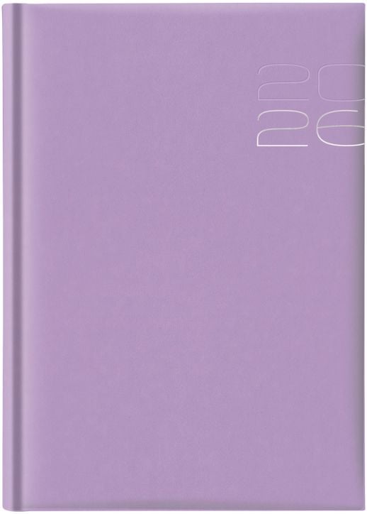 Лилав тефтер-органайзер Lediberg Matra с мултинационално тяло (осем езика, включително български) за 2026 година в A5 размер.