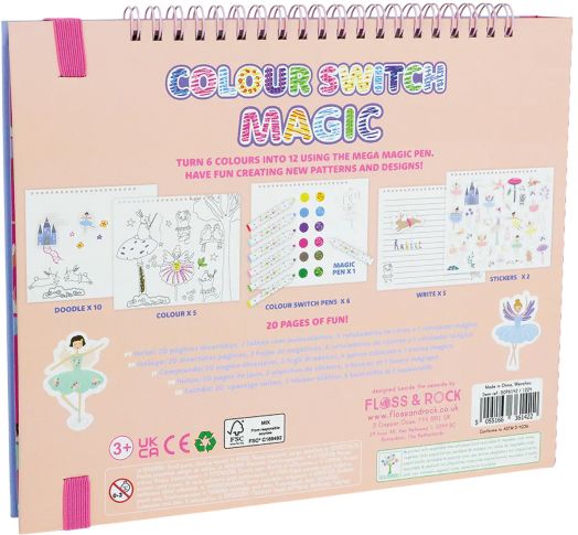 Магическата книжка Floss & Rock - Enchanted, Colour Switch Magic за творчески идеи е уникална и супер забавна - в комплект с цветни и магически маркери и пълна с творчески идеи!