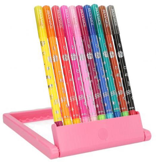 Комплектът съдържа 10 маркера и допълнителна стойка с която маркерите няма да се загубват или да бъдат разпръснати навсякъде.