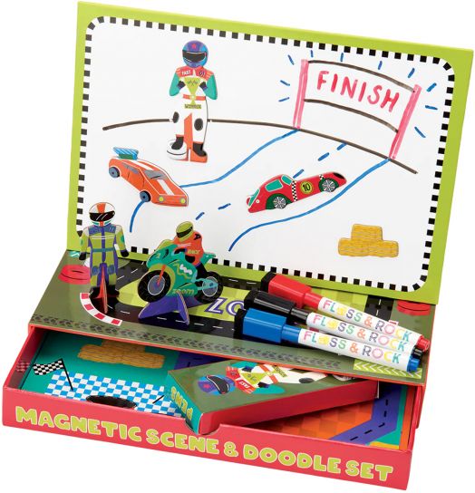 Този комплект съчетава магнити и рисуване в едно, като предлага безкрайни възможности за творчески истории и забавна игра.