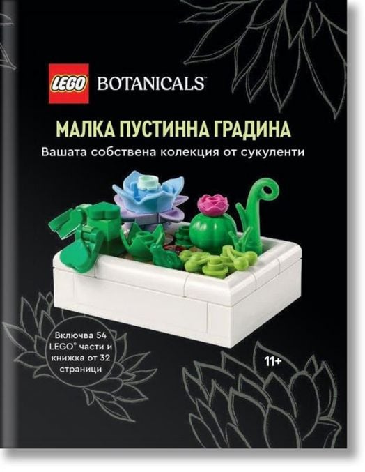 Открийте удивителния свят на екзотичните растения с комплекта от малки сукуленти на LEGO. Използвайте частите, за да сглобите своята малка пустинна градина. Включената книжка съдържа интересни факти и инструкции, с помощта на които ще накарате градината ви да порасне!
