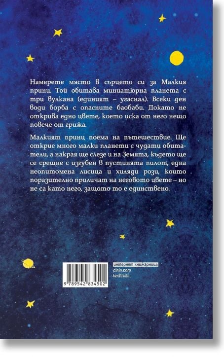 Намерете място в сърцето си за Малкия принц. Той обитава миниатюрна планета с три вулкана (единият – угаснал). Всеки ден води борба с опасните баобаби. Докато не открива едно цвете, което иска от него нещо повече от грижа.